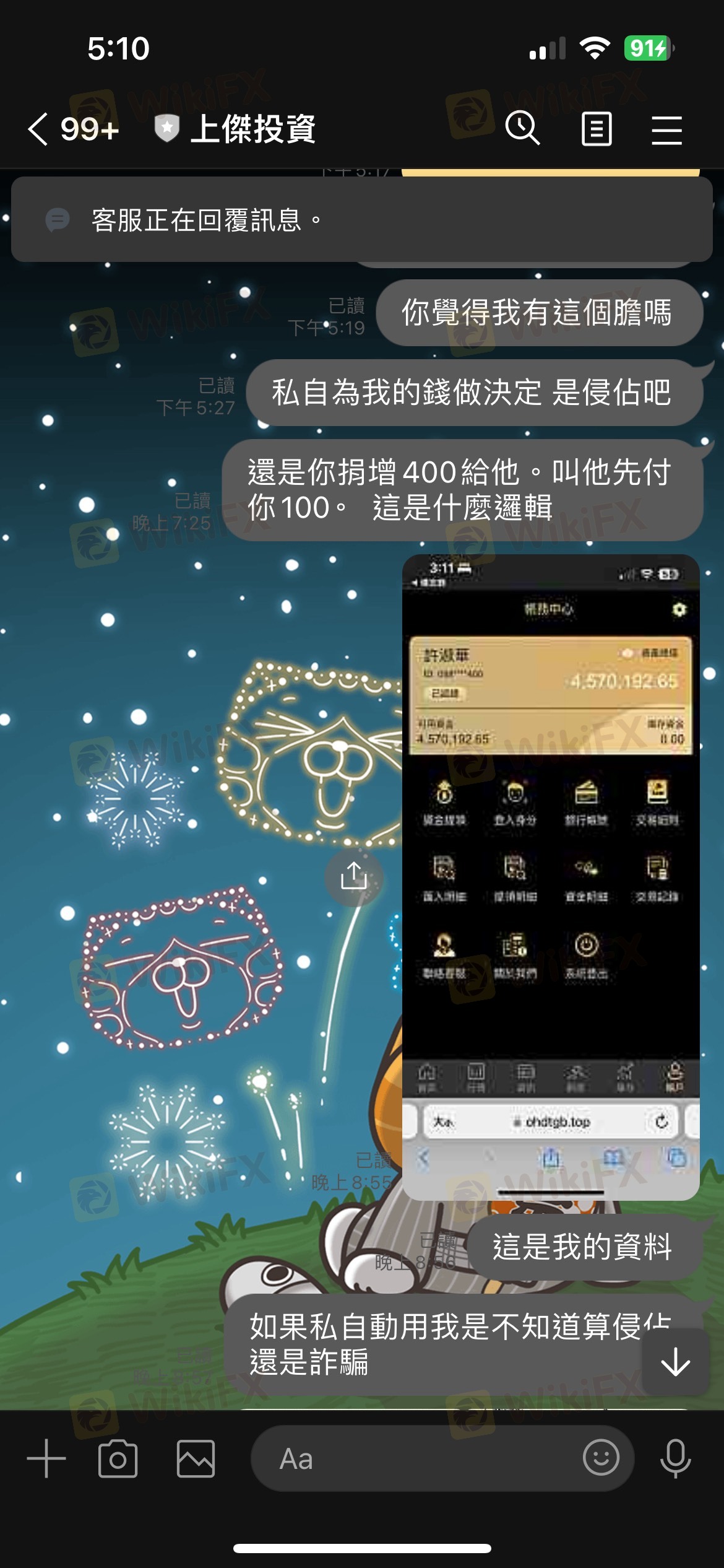 40萬只給我7500 其他通通不出金。最後還凍結