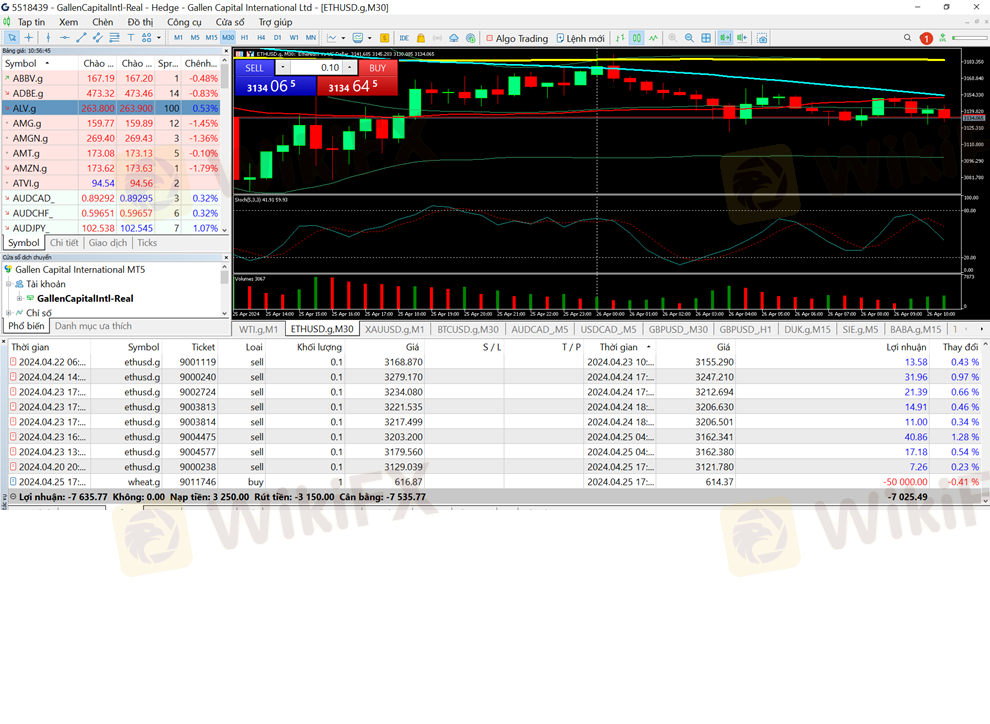 ID (MT5) của tôi là 5518439, bọn cò làm việc cho sàn Gallen capital này lừa đảo rất tinh vi, chúng dẫn dụ tôi nạp tiền vào sàn này. Tôi đã nạp 15000 usd, sau chúng yêu cầu tôi giao dịch đủ 30% ký quỹ mới cho rút, và tôi đã giao dịch đủ theo yêu cầu tk của tôi đã lên đến 42500 usd. Tuy nhiên bọn này không cho tôi rút và tự động đăng nhập vào tk của tôi (tôi đã thay đổi Pass) và tự giao dịch mua Wheat.g (1 lót) để cho cháy tài khoản. Bọn sàn này là quân bất lương, rồi sau nay con cháu chúng nó cũng sẽ gánh đủ tội ăn cướp thôi. Tôi đăng lên đây để mọi người tránh đừng giao dịch ở sàn không uy tín, cũng đừng nghe bọn cò mồi nói này nói kia
