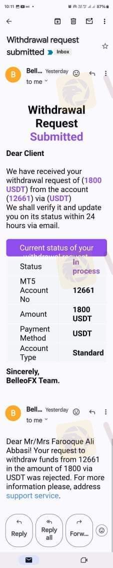 I am writing to provide my review of the services provided by Belleofx scammer Broker. My name is Farooq Ali Abbasi, and I opened an account with Belleofx with the MT5 A/C No. . I2661 would like to bring to your attention an incident that has occurred with my account, which has led me to believe that Belleofx is a fraudulent broker.
