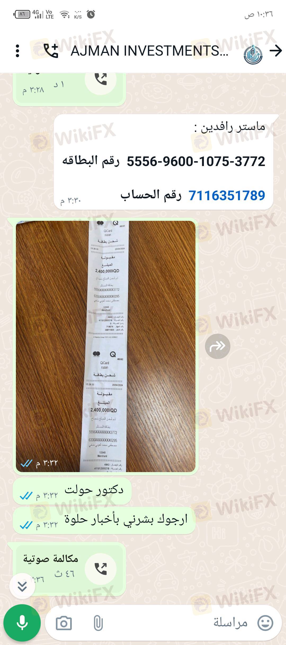 اتصلت بي موظفة من هذه الشركة المحتالة تقول لي بأن هنالك فرصة لتغير حياتك ولكي تحقق الثراء السريع وانا صدقتها لأني لا املك خبرة في خذا المجال وجعلتني اقوم بأيداع مبلغ 250 دولار ومن ثم بدأت التداول لبعض الايام وبعدها اخبرني مدير الحساب خاصتي بأن هنالك فرصة كبيرة لكي نحقق ربح افضل فظل يحرضني ويظغط علي لكي اقترض مبلغ اخر وقدره 1300 دولار واعطيتهم اياه وبالفعل بدأت ارى ارباح كثيرة في وقت قصير وعندما وصلت الارباح الى 10000 دولار طلبت عملية سحب فأخبروني اني يجب ان ادفع التأمين والمستحقات وهي 1600 دولار وبعد ان ارسلت الاموال لهم قالو لي يجب ان تدفع الضريبة لأن اموالك في تركيا الان وقبل ان تُحول يجب ان ترسل لنا مبلغاخر وقدره 1500 دولار فهذا نصب اذا ارسلت لهم مرة اخرى فلن احصل على شئ ولا اعرف اذا كان هناك طريقة لسحب اموالي