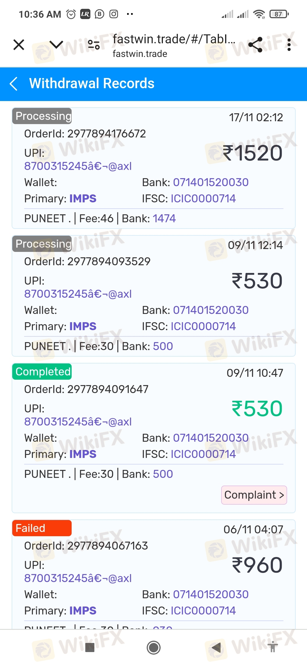 鉴于外汇行业的错综复杂,不排除有个别外汇交易商通过欺骗手段获得监管机构的合法注册。如WikiFX所公布数据与实际情况有不符之处,请通过WikiFX“投诉”和“纠错”功能,向我们提出,我们将及时进行核实查证,并公布相关结果。