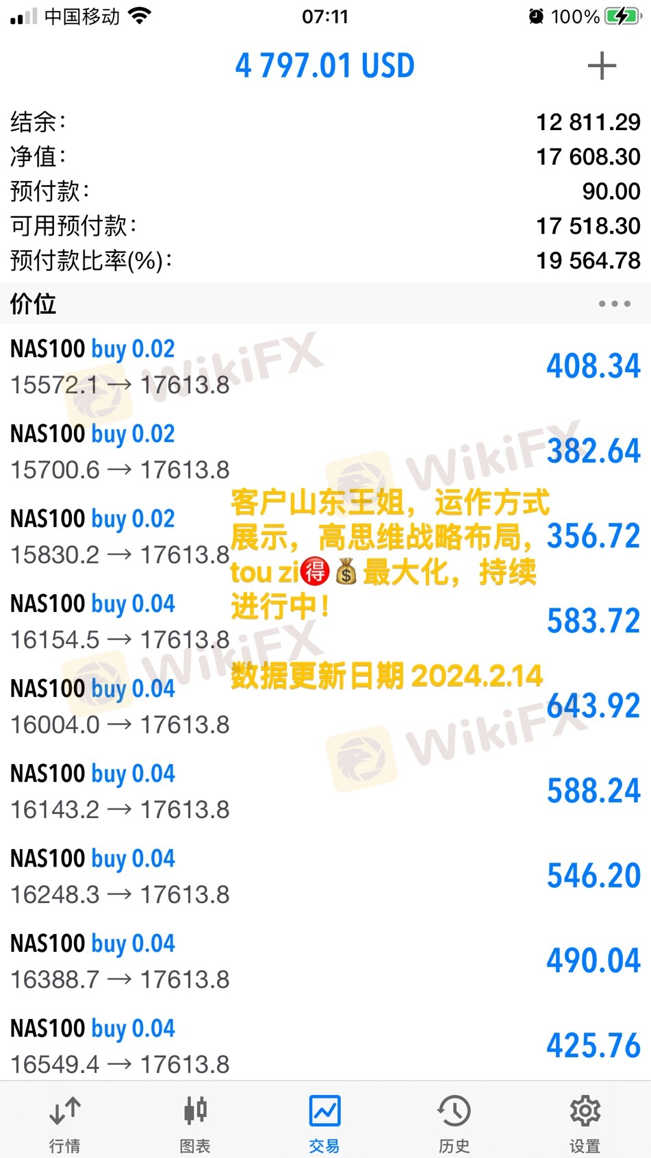 特别提示,WikiFX所列信息仅供参考,不构成投资建议。外汇平台由客户自行选择,平台操作带来的风险,与WikiFX无关,客户需自行承担相关后果和责任。